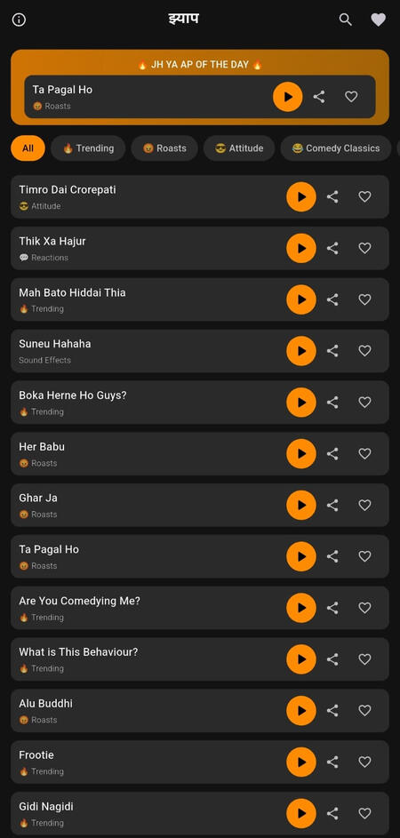 Get all the latest Nepali viral sounds, roasts, and meme audio in one place. Tap to play, hold to share instantly with your friends. Completely free to download and use.